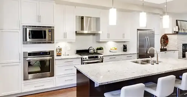 Nos services de peinture de meubles de cuisine offrent à vos meubles de cuisine un rafraîchissement indispensable, rapide et abordable. Choisissez parmi notre large gamme de couleurs de peinture ou, si vous avez une teinte spécifique en tête, nous pouvons vous fournir une teinte parfaitement assortie. Nous réalisons le travail en quelques jours seulement et laissons à vos meubles une finition digne d'une usine, résistante à l'épreuve du temps.